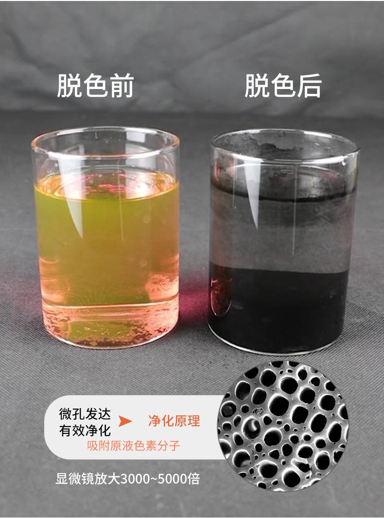 5、木質活性炭吸附性能強,孔隙結構發達,吸附容量高,強度高,灰分低,孔徑分布合理。