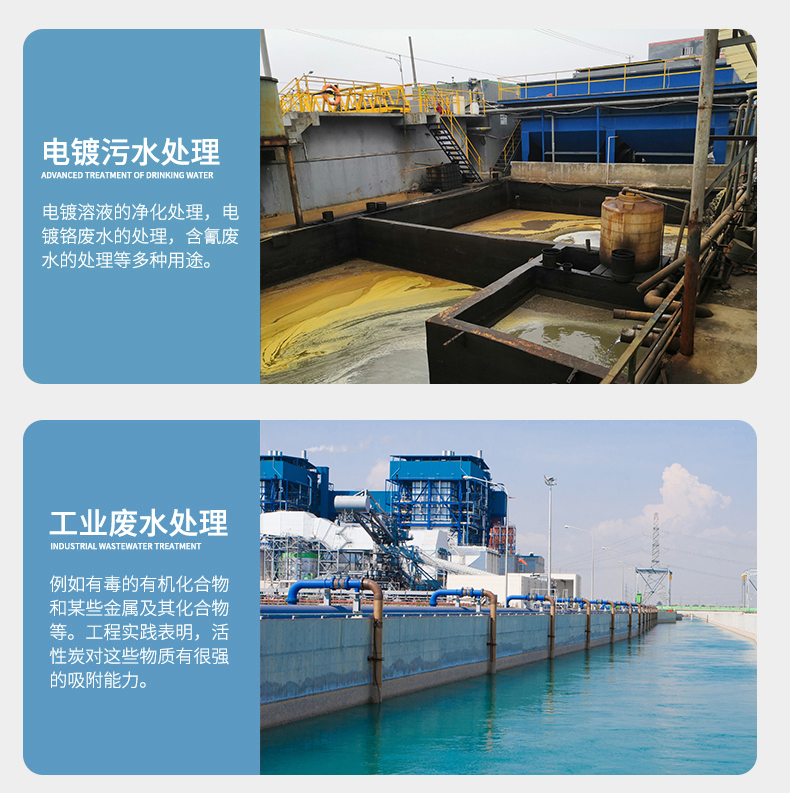 2、自來水廠:利用木質粉狀活性炭的特性,具有吸附過濾效果,達到自來水排放標準。