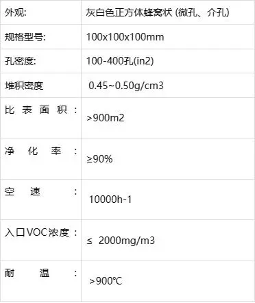 五,性能參數,以下是蜂窩狀VOC吸附沸石分子篩性能技術參數:
