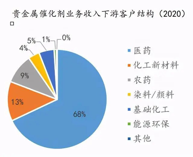 貴金屬催化劑的上游主要涉及貴金屬礦產、載體研制等。貴金屬在全球屬于稀缺資源,貴金屬催化劑的主要原材料是鉑、鈀等貴金屬原料,而我國在鉑族金屬資源上屬于極度匱乏的國家,主要貴金屬大部分依賴進口,其價格受全球和下游行業經濟周期的影響變化快、波動大,且鉑族金屬價格昂貴,通常占產品生產成本的90%以上,所以貴金屬價格的波動對企業成本影響較大。貴金屬催化劑用載體種類繁多,以硅酸鹽、金屬氧化物、炭載體為主。貴金屬催化劑下游應用十分廣泛,涉及石油化工、煤化工、醫藥、農藥、食品、染料、顏料、化工新材料、環保、新能源、電子等各領域。