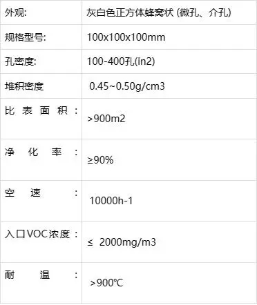 性能參數,以下是蜂窩狀VOC吸附沸石分子篩性能技術參數: