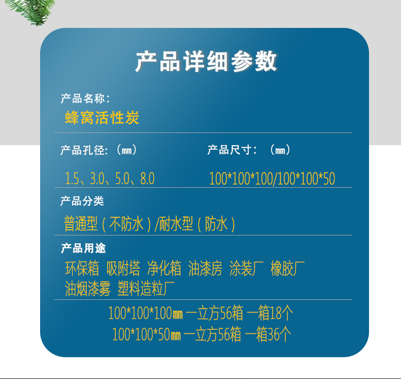 1.蜂窩活性炭可廣泛用于各種氣體凈化設(shè)備和廢氣治理工程,如:食品、化工、工業(yè)尾氣處理、機(jī)場(chǎng)、造船廠、電子行業(yè)、汽車廠、制藥、醫(yī)療、工業(yè)大廈、大型劇院等公共場(chǎng)合用到的通風(fēng)設(shè)備的尾氣處理。
